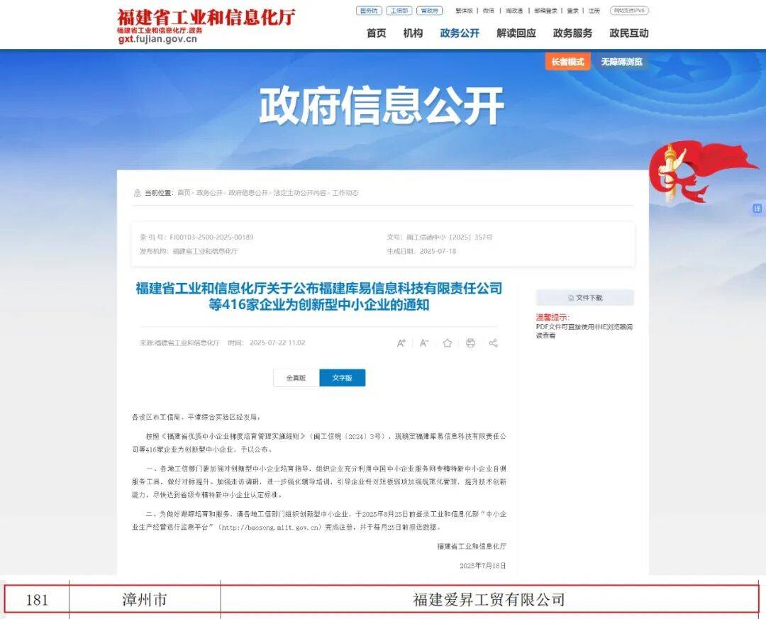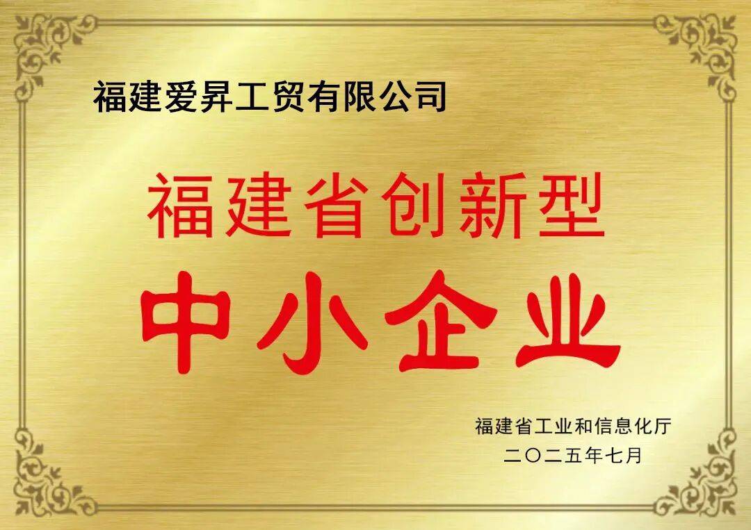 创新实力 标杆典范 祝贺爱昇工贸:成功荣获“福建省创新型中小企业”荣誉称号!